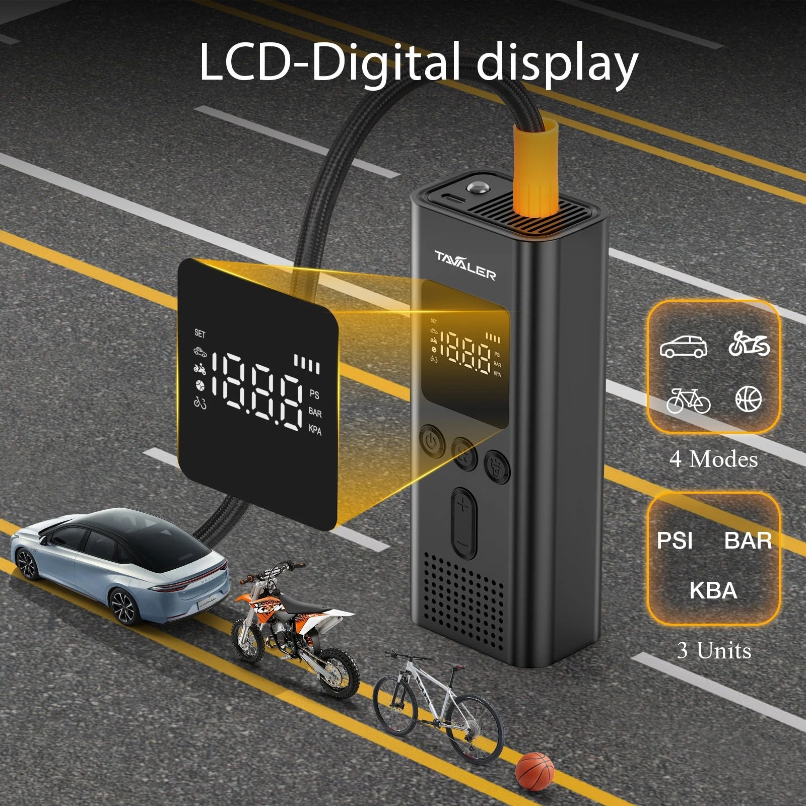 Smart Digital Display: The bright LCD screen shows real-time pressure readings and lets you set your desired PSI for precise inflation—automatically stopping when it’s done.